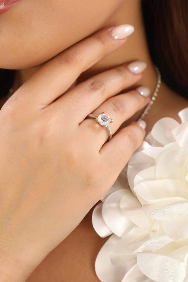 Kadın Beyaz Altın Renk Büyük Tek Taş Yüzük