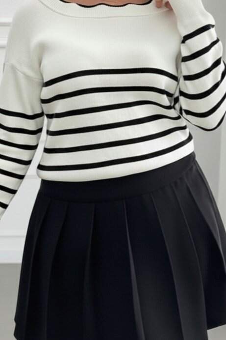 Kadın Beyaz Sırt Bağlama Detaylı çizgi Desen Triko Bluz
