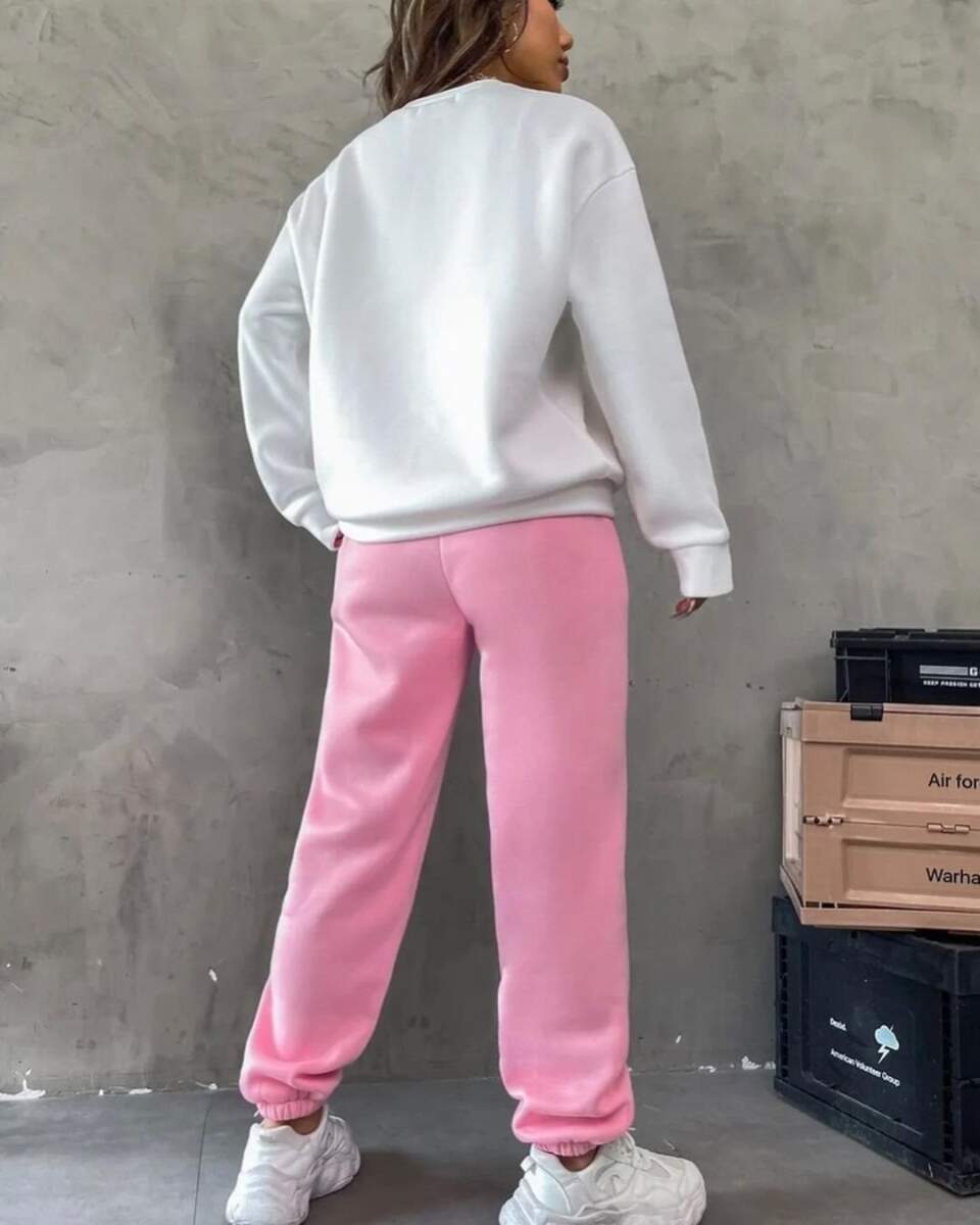Kadın Bisiklet Yaka Brooklyn Baskılı üç Iplik Kumaş Sweat
