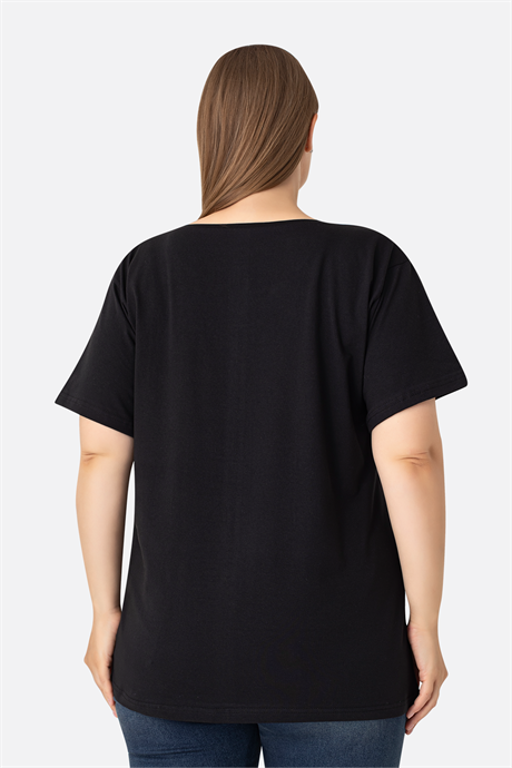Büyük beden kalıbı ile vücudu sıkmadan rahat bir duruş sağlar.
