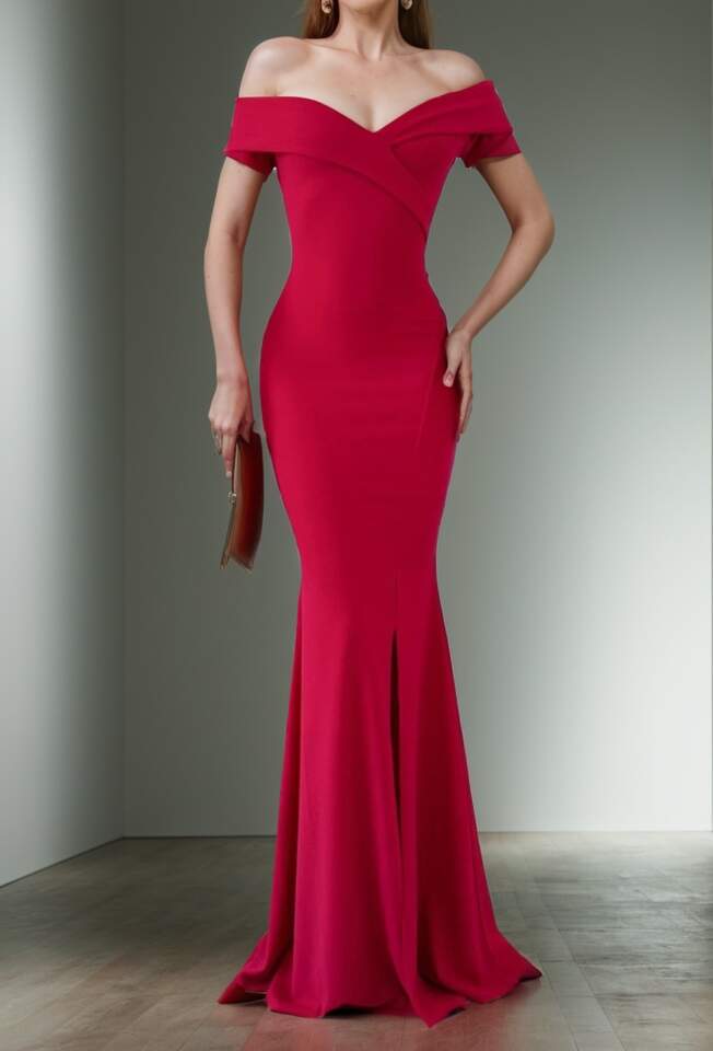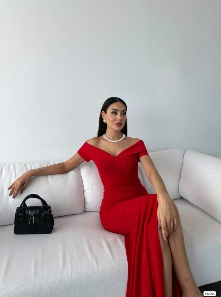 Kadın Dalgıç Kumaş Kayık Yaka Ve Dekolte Detaylı Elbise