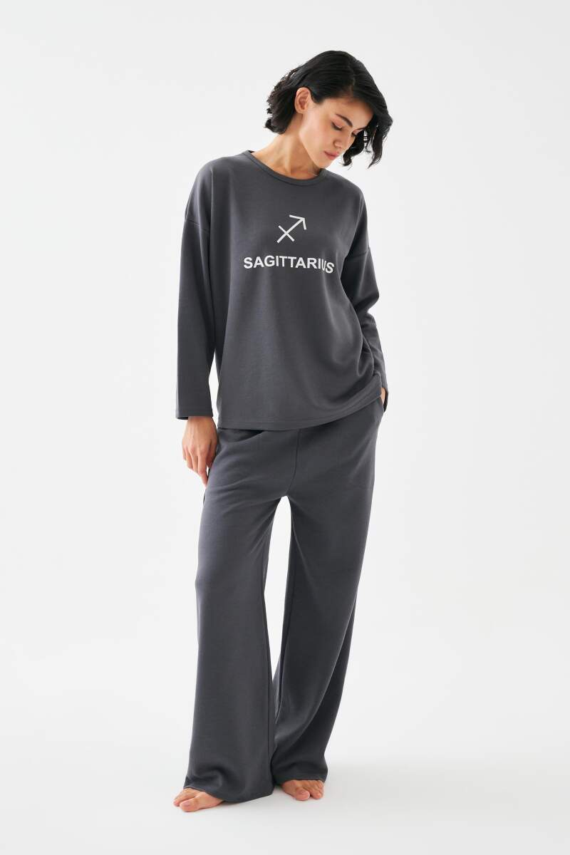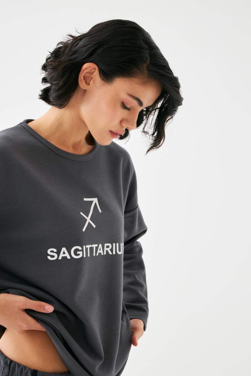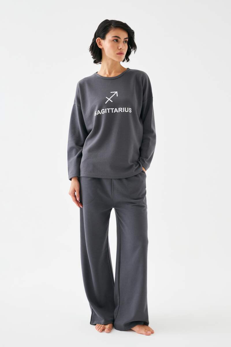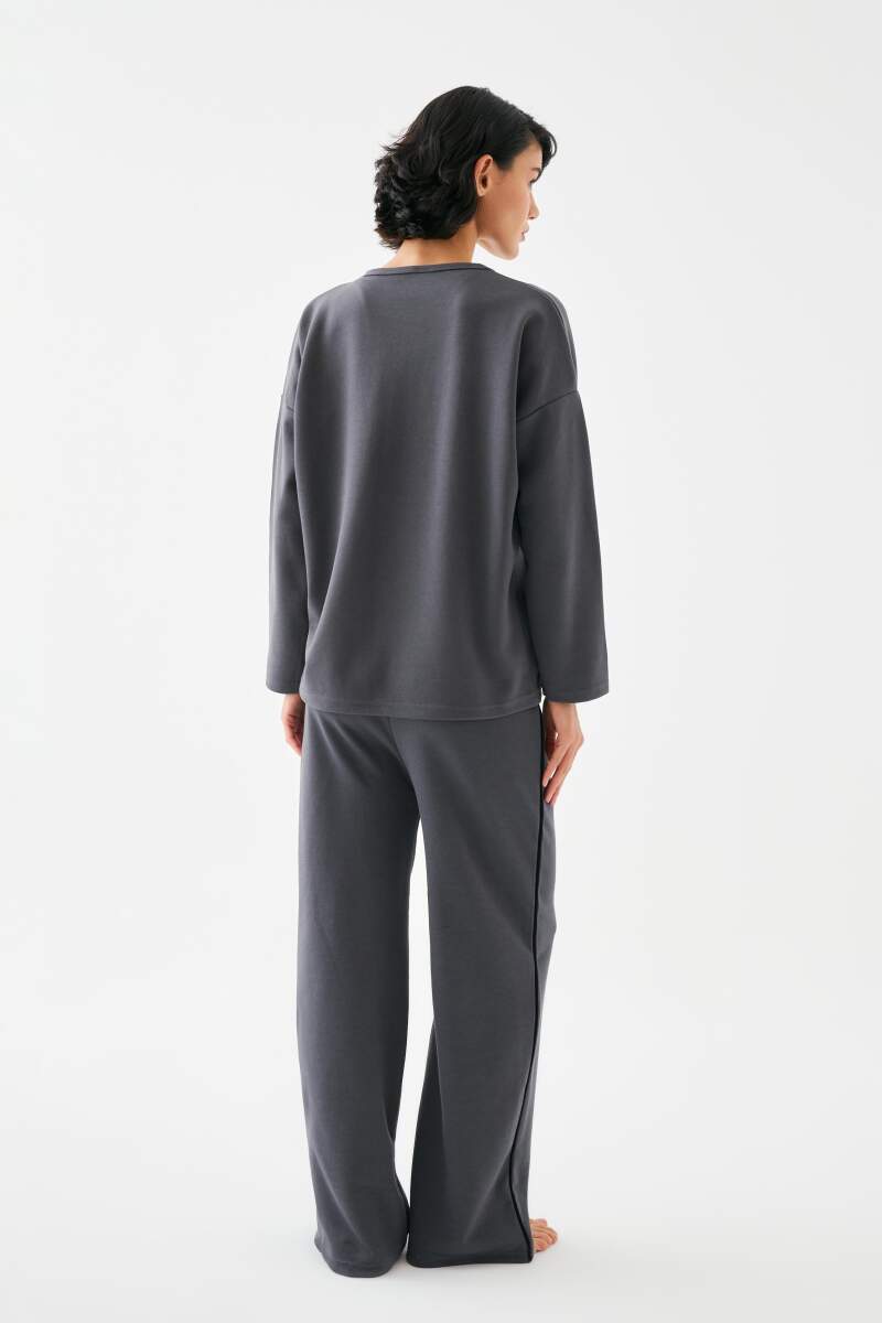Akbeniz Kadın Füme Yay Burcu Oversize 2 İplik Eşofman Ev Giyim Takımı