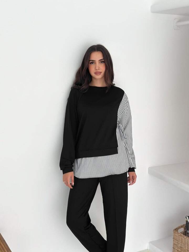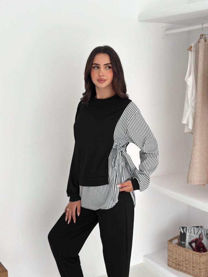 Kadın Gömlek çizgili Yandan Bağlamalı Ikili Takım