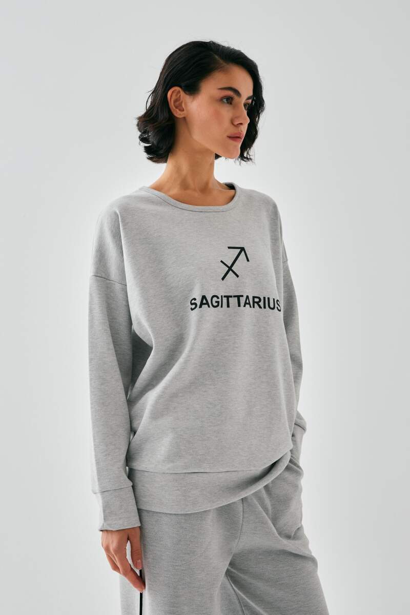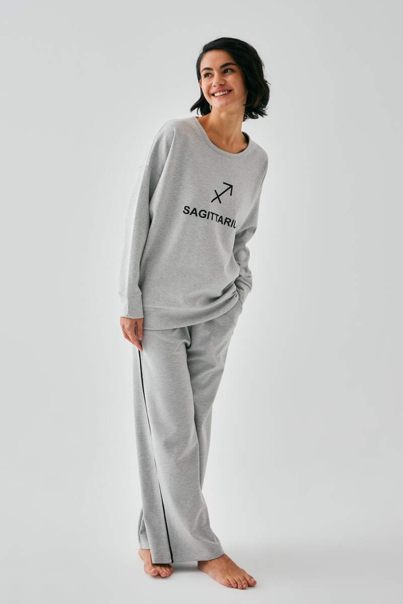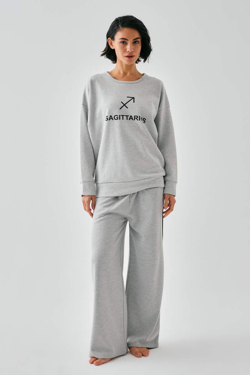 Akbeniz Kadın Gri Yay Burcu Oversize 2 İplik Eşofman Ev Giyim Takımı