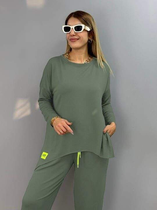 Kadın Iki Iplik Viskon Pamuk Kumaş Arma Detaylı Ikili Takım