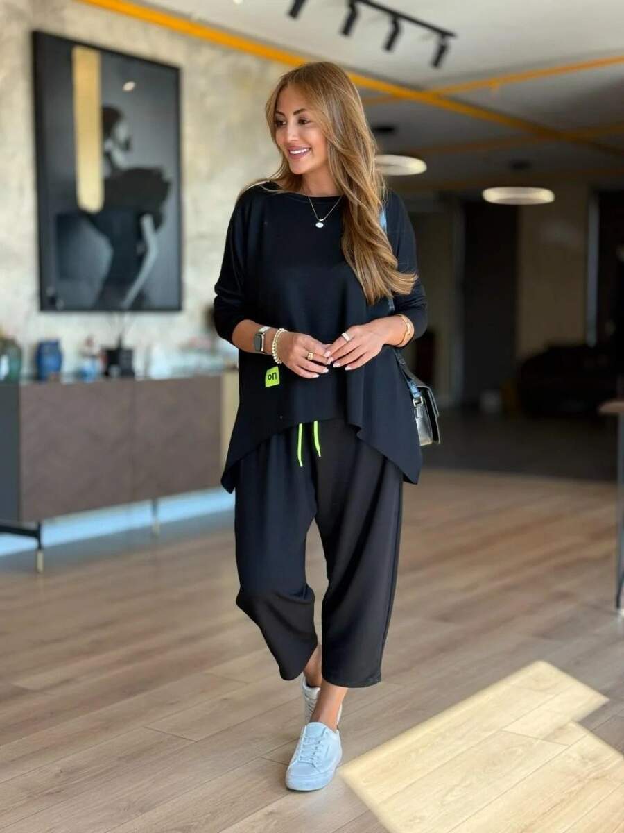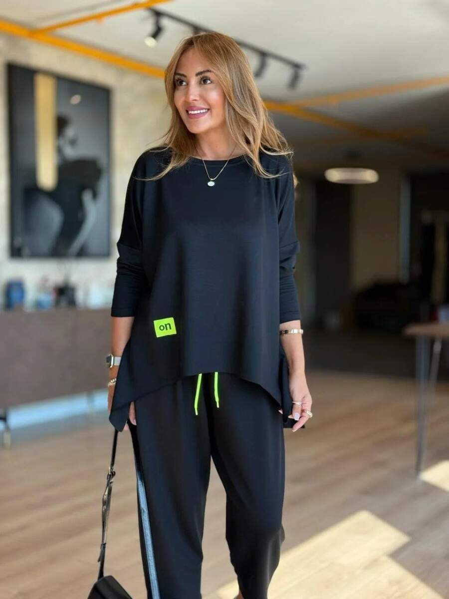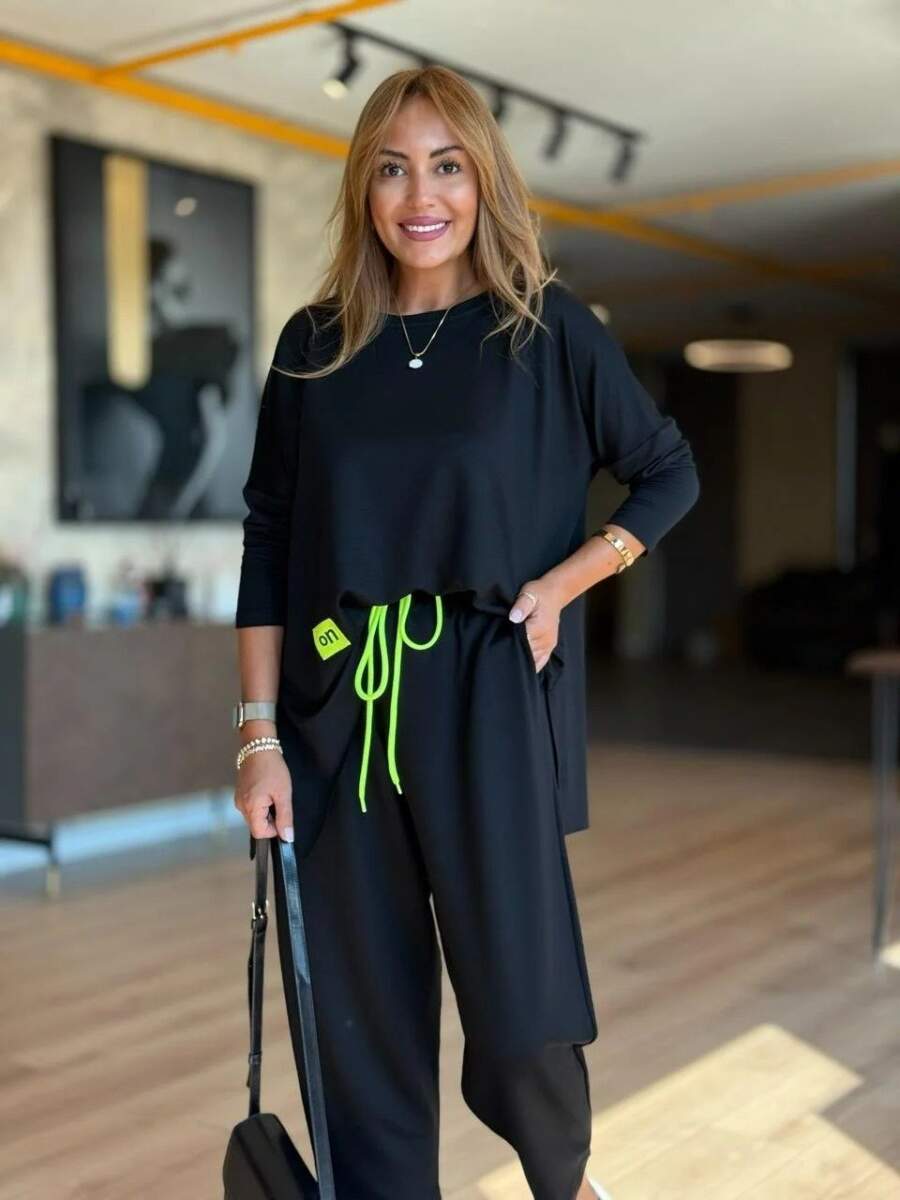 Kadın Iki Iplik Viskon Pamuk Kumaş Arma Detaylı Ikili Takım