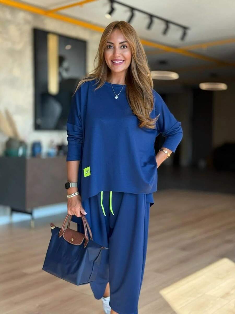 Kadın Iki Iplik Viskon Pamuk Kumaş Arma Detaylı Ikili Takım