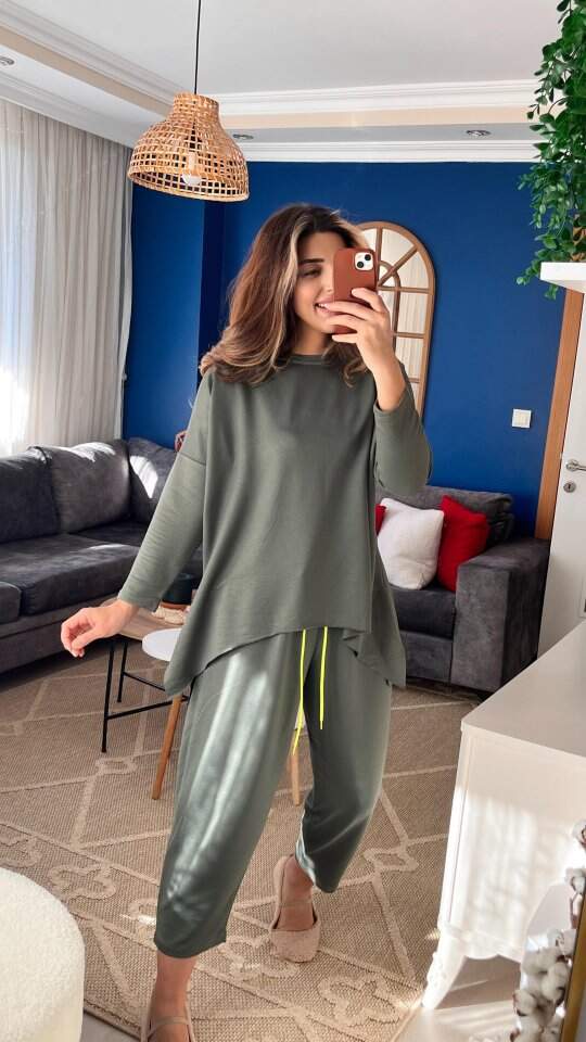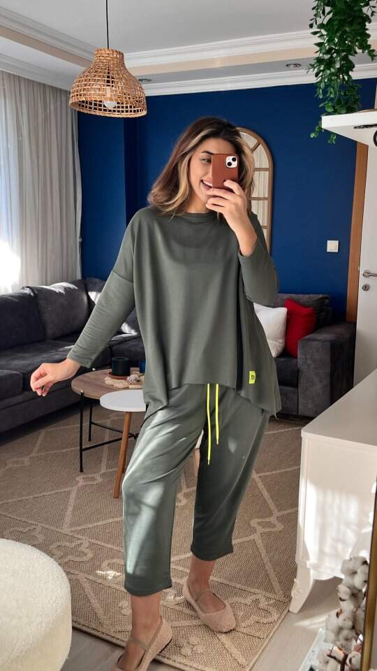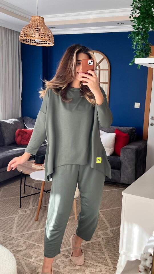 Kadın Iki Iplik Viskon Pamuk Kumaş Arma Detaylı Ikili Takım