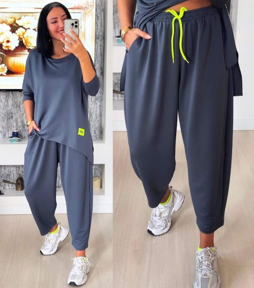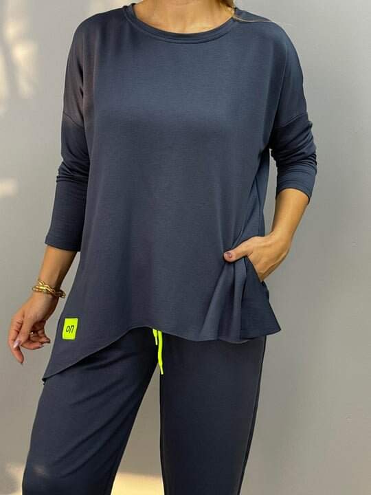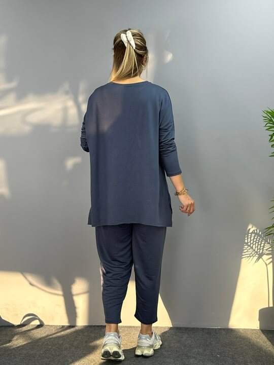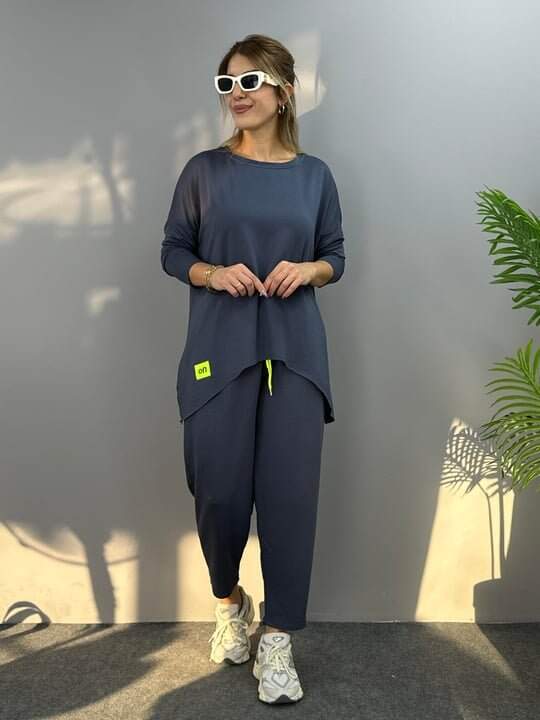 Kadın Iki Iplik Viskon Pamuk Kumaş Arma Detaylı Ikili Takım