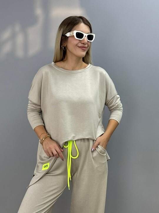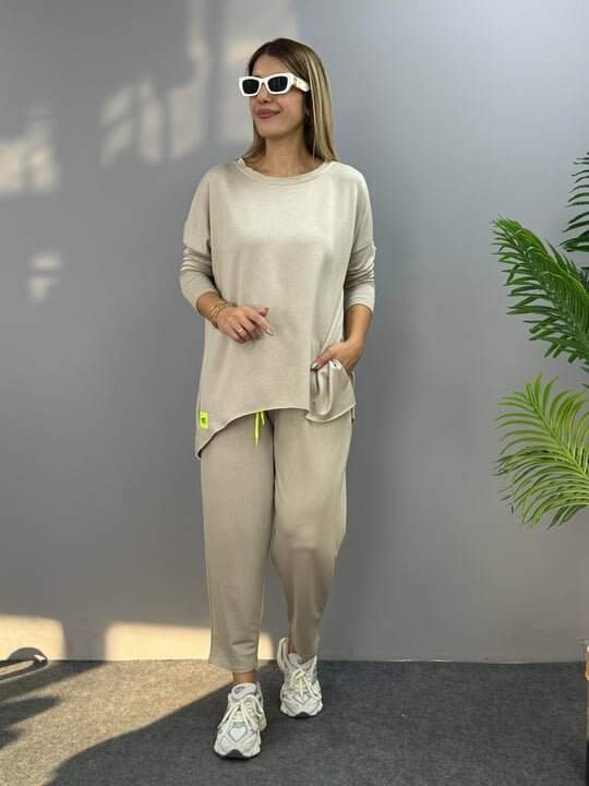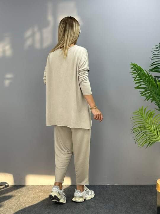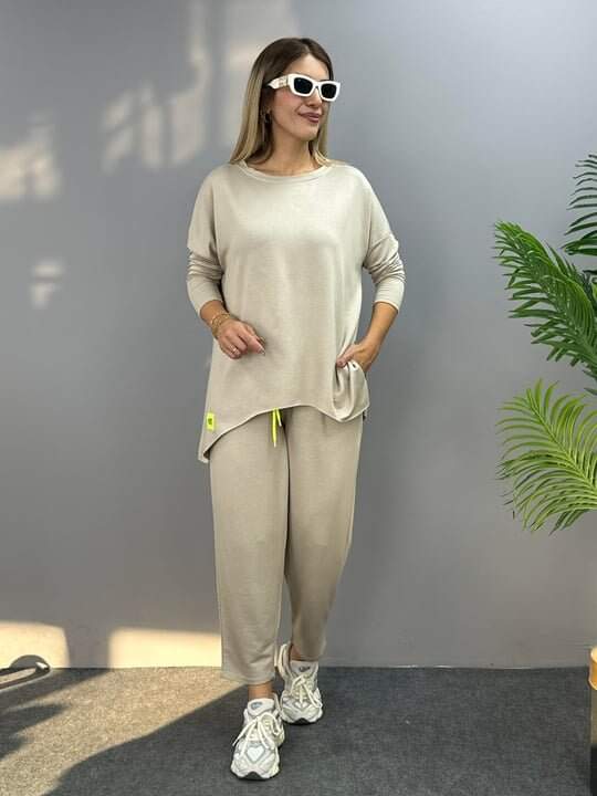 Kadın Iki Iplik Viskon Pamuk Kumaş Arma Detaylı Ikili Takım