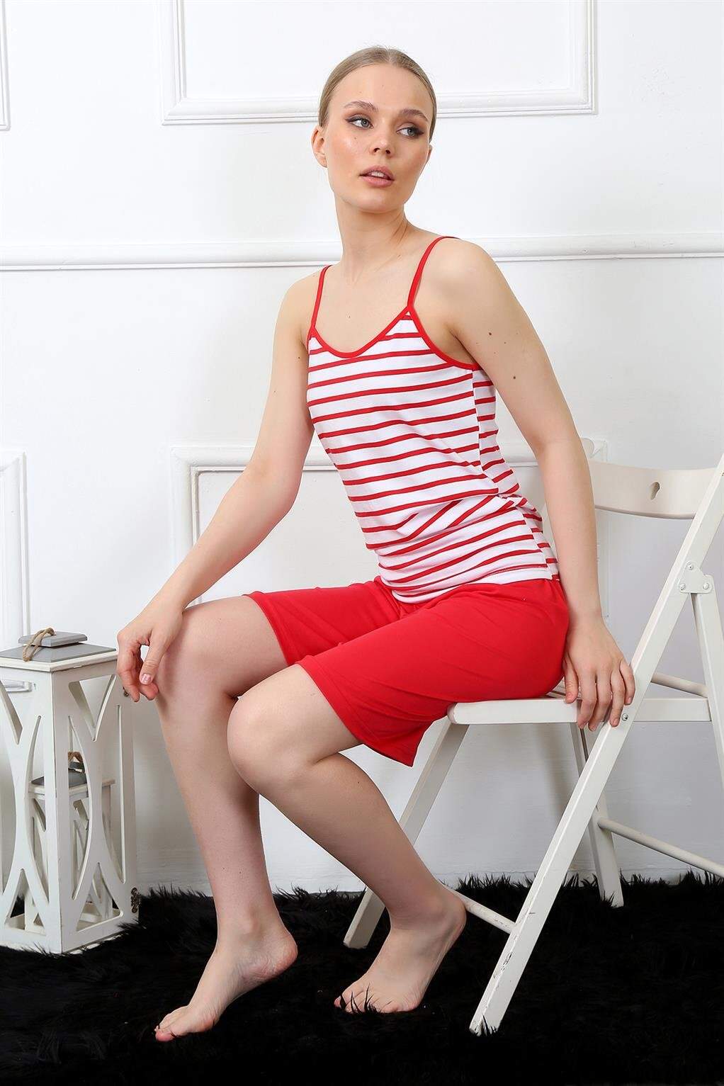 Angelino Kadın İp Askılı Kapri Pijama Takım