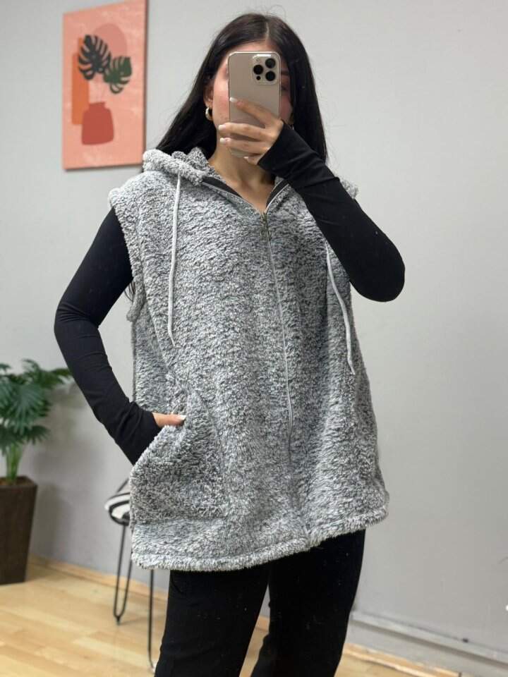 Kadın Kapüşon Ve Fermuar Detay Welsoft Kolsuz Yelek