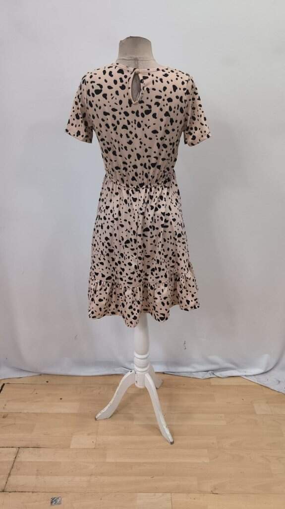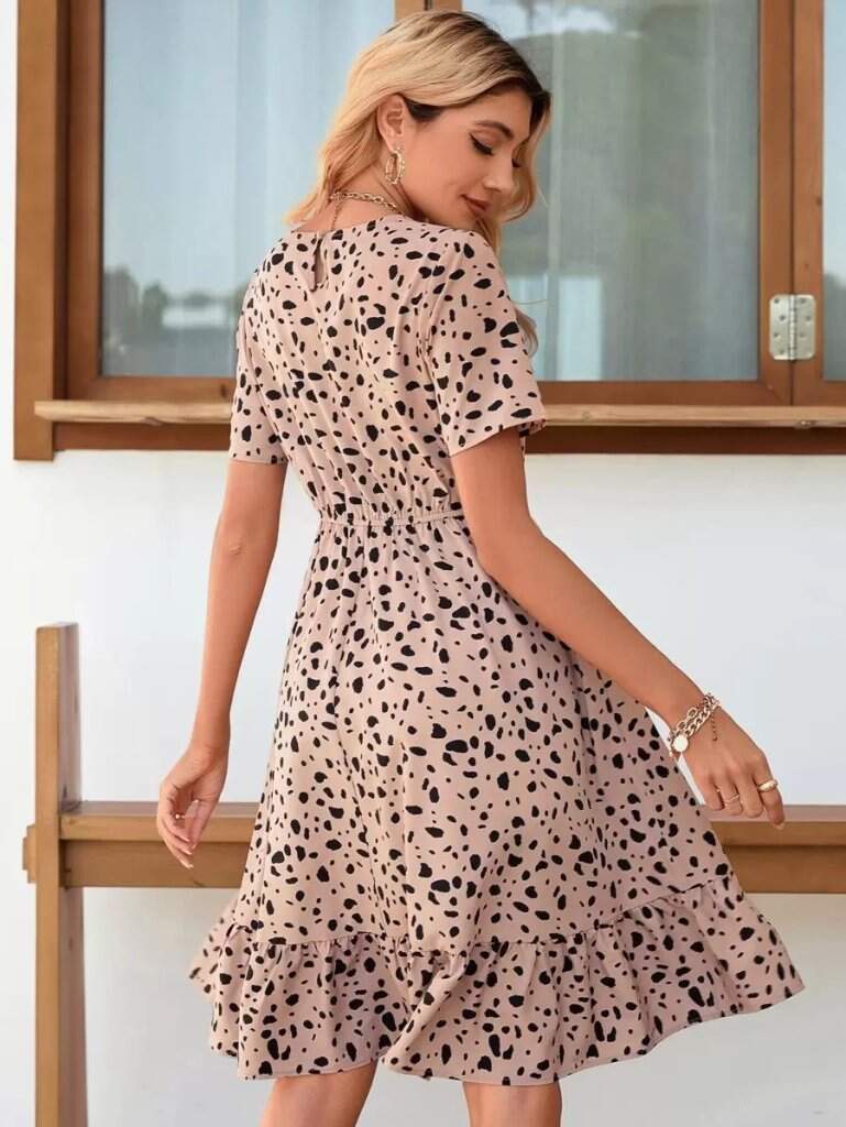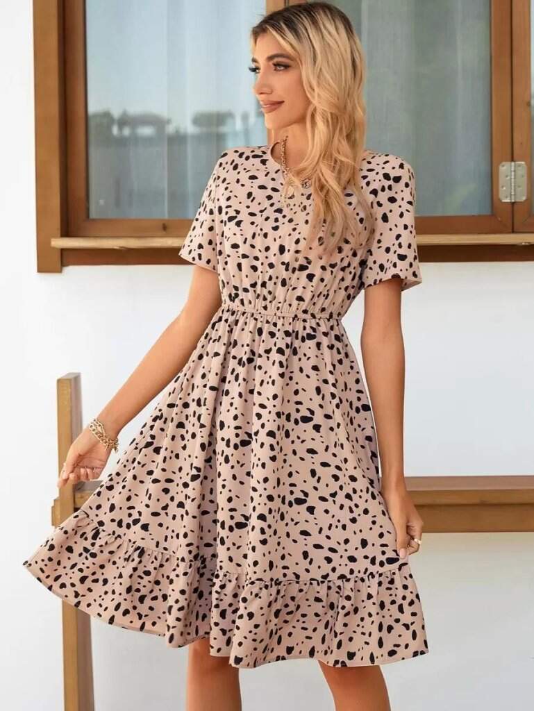 Kadın Kısa Kollu Bisiklet Yaka Desenli Süprem Elbise