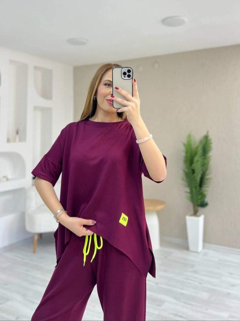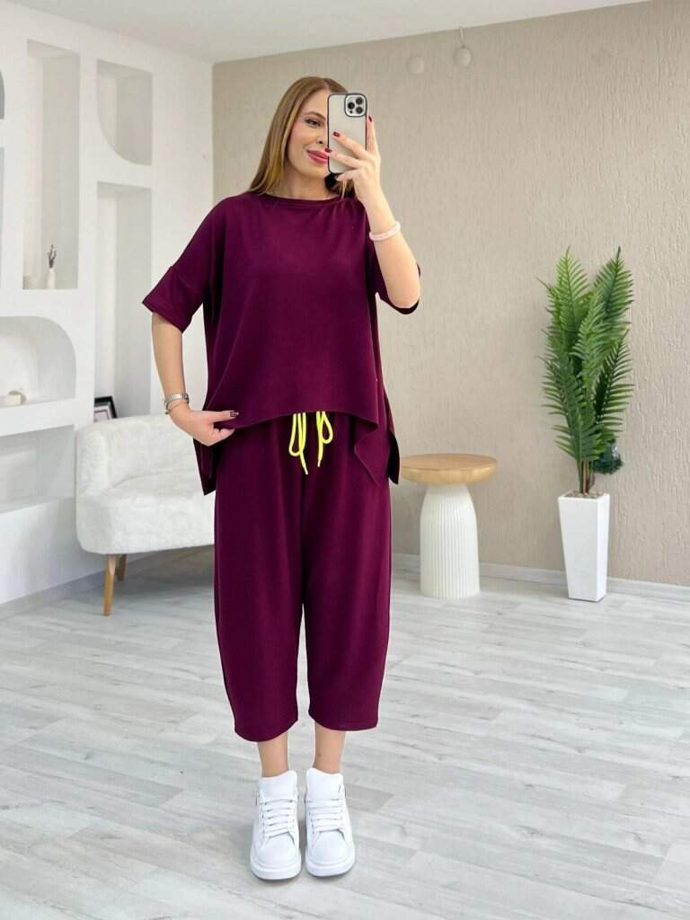 Kadın Kısa Kollu Bisiklet Yaka Viskon Iki Iplik Bluz Ve Pantolon Ikili Takım