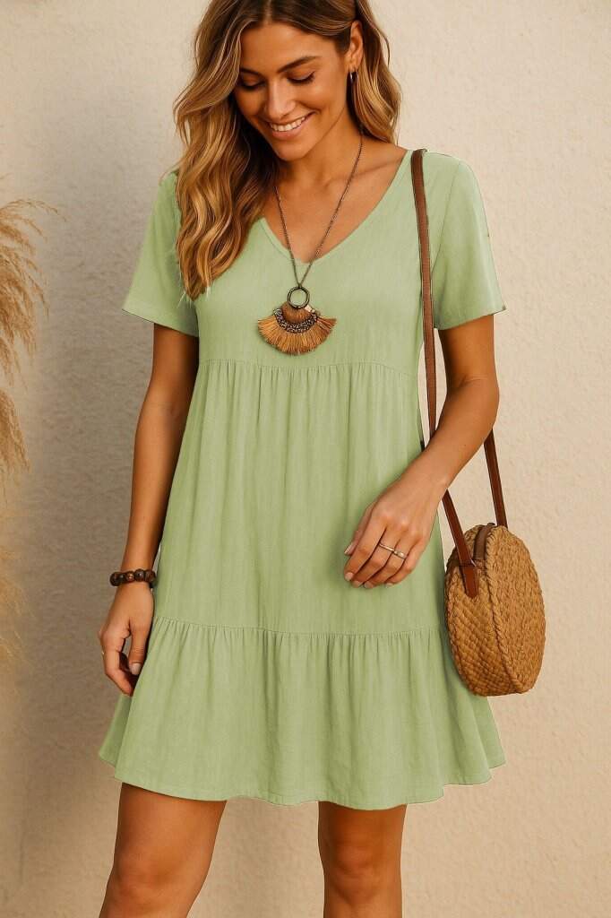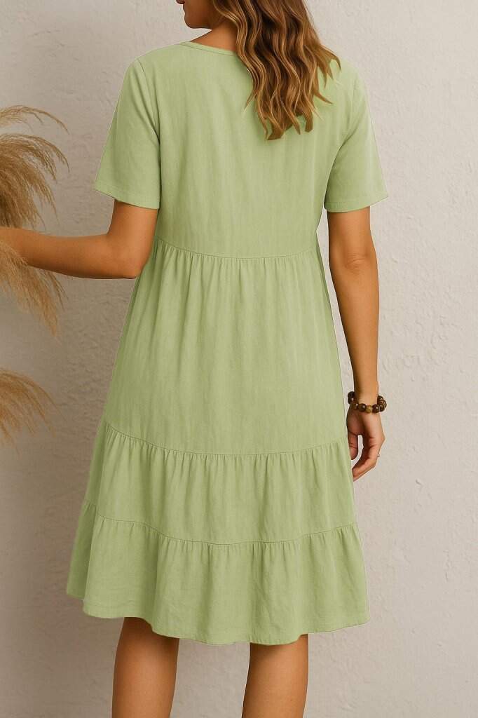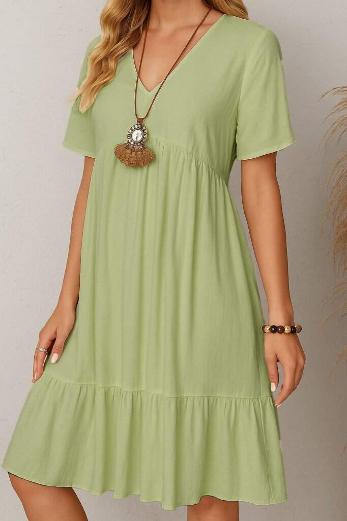 Kadın Kısa Kollu V Yakalı Fırfırlı Bürümcük Elbise