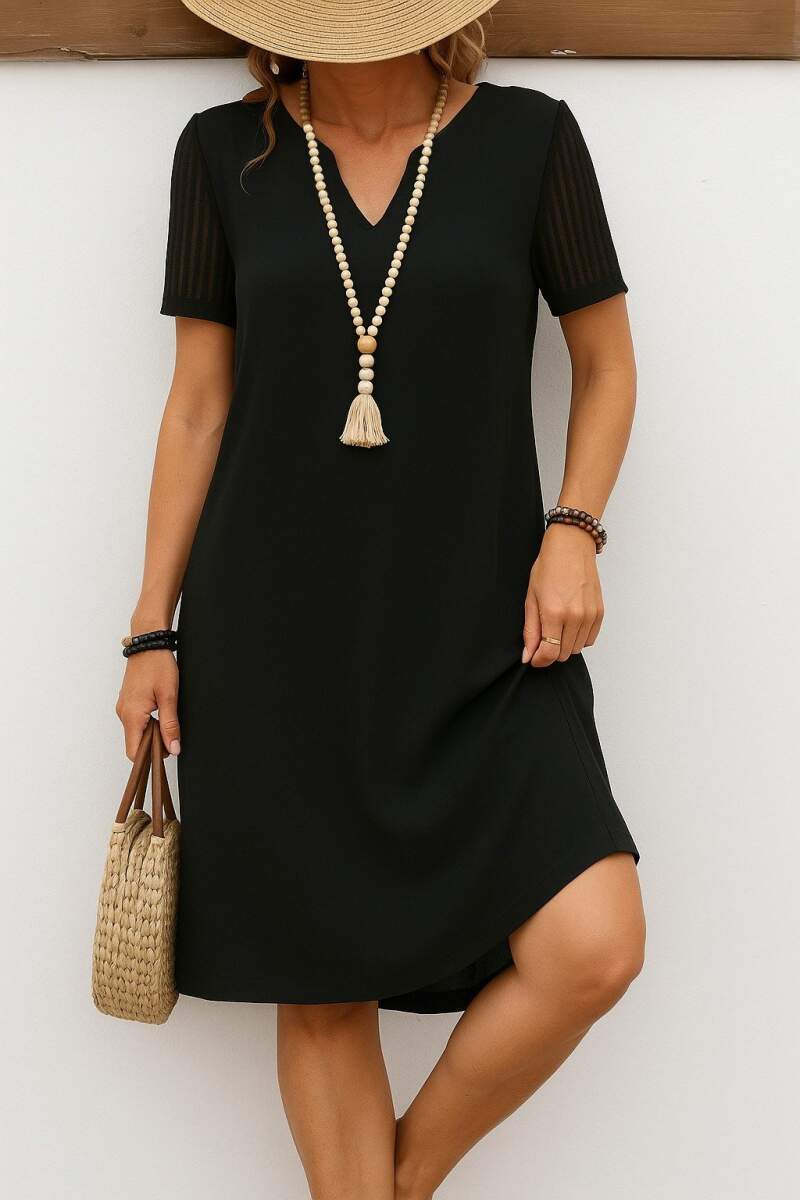 Kadın Kısa Kollu V Yakalı Kısa Janjan Krep Elbise