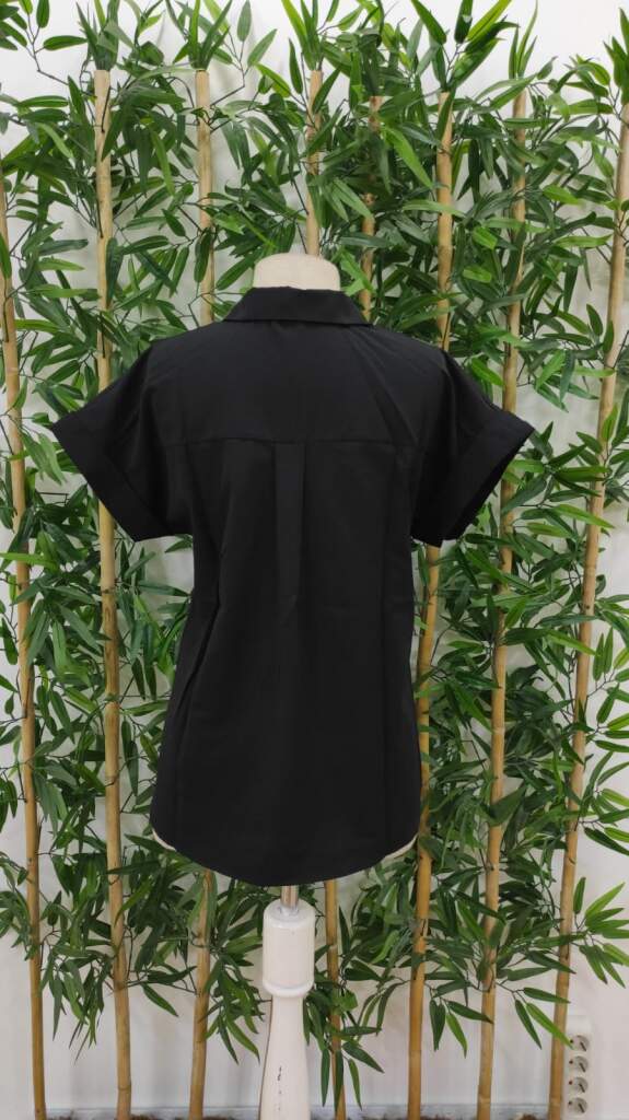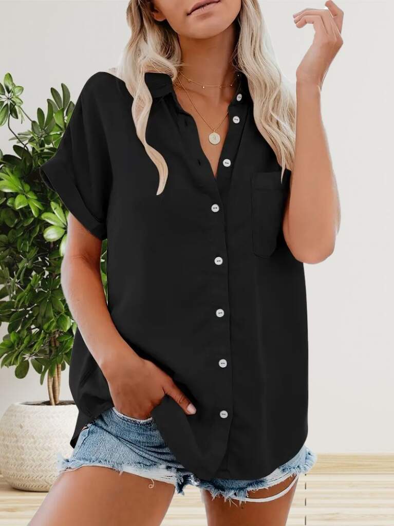 Kadın Kısa Kollu V Yakalı önden Düğmeli Dokuma Gömlek
