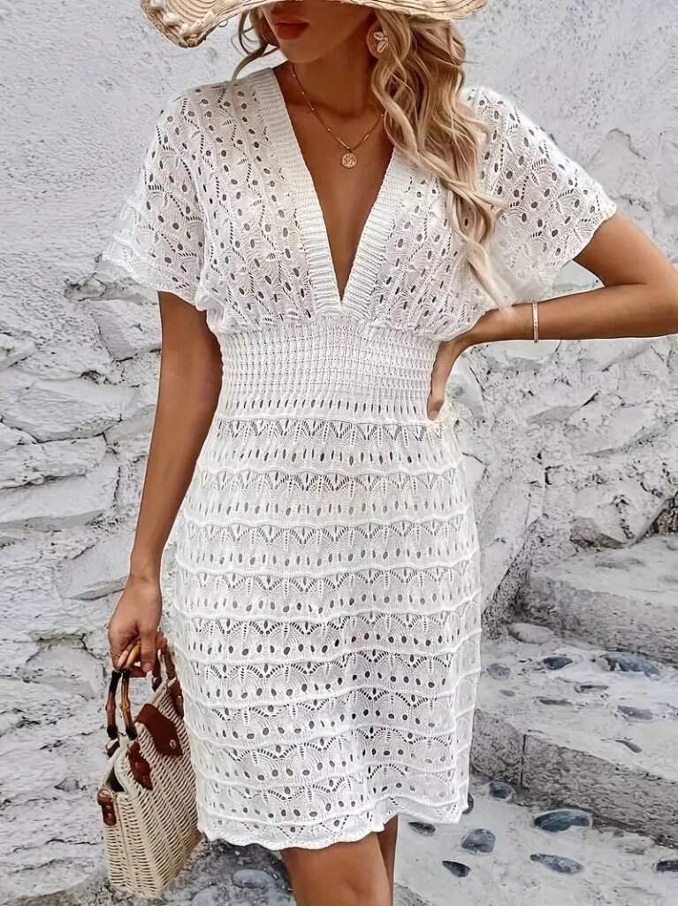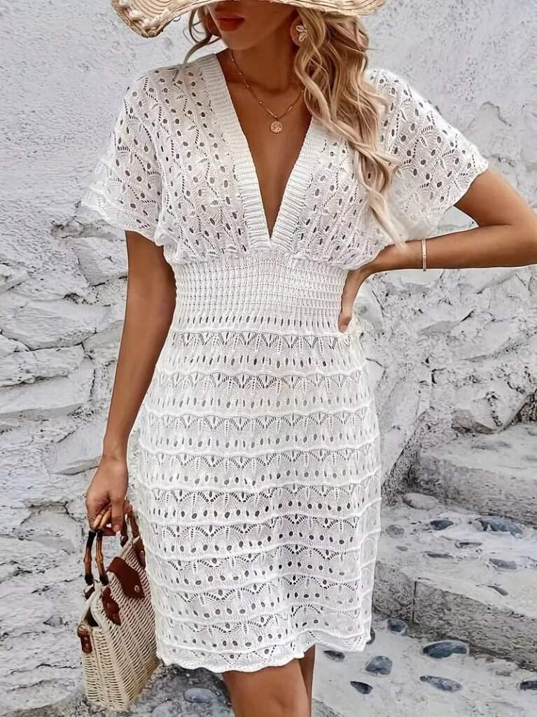 Kadın Kısa Kollu V Yakalı örme Triko Elbise