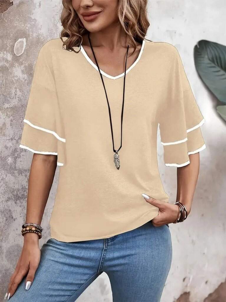 Kadın Kısa Kollu V Yakalı Viskon Bluz