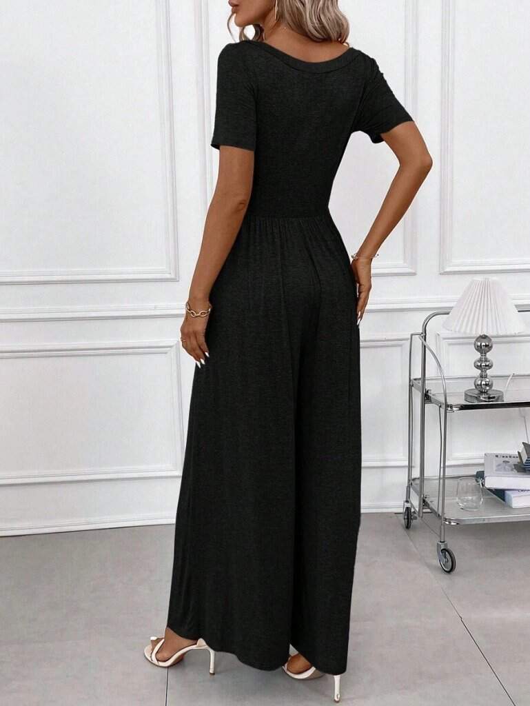 Kadın Kısa Kollu Yuvarlak Yaka Geniş Paçalı Bürümcük Tulum