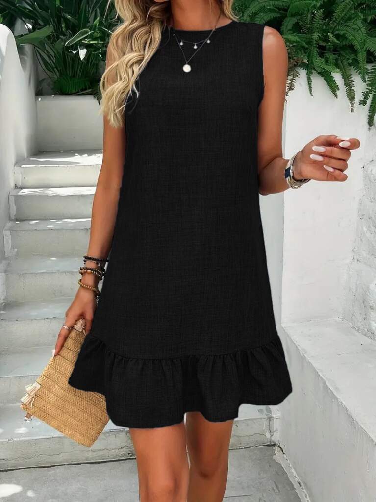 Kadın Kolsuz Bisiklet Yaka Fırfırlı Sofya Elbise