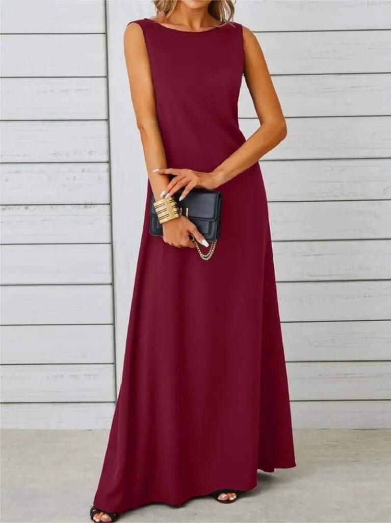 Kadın Kolsuz Kayık Yaka Maksi Janjan Krep Elbise