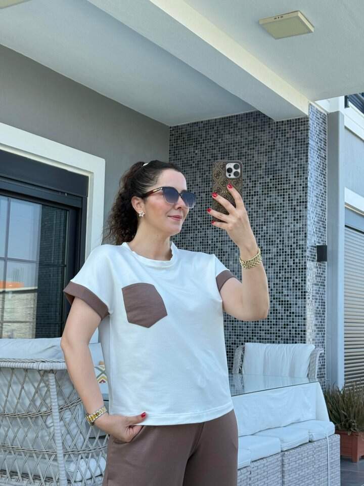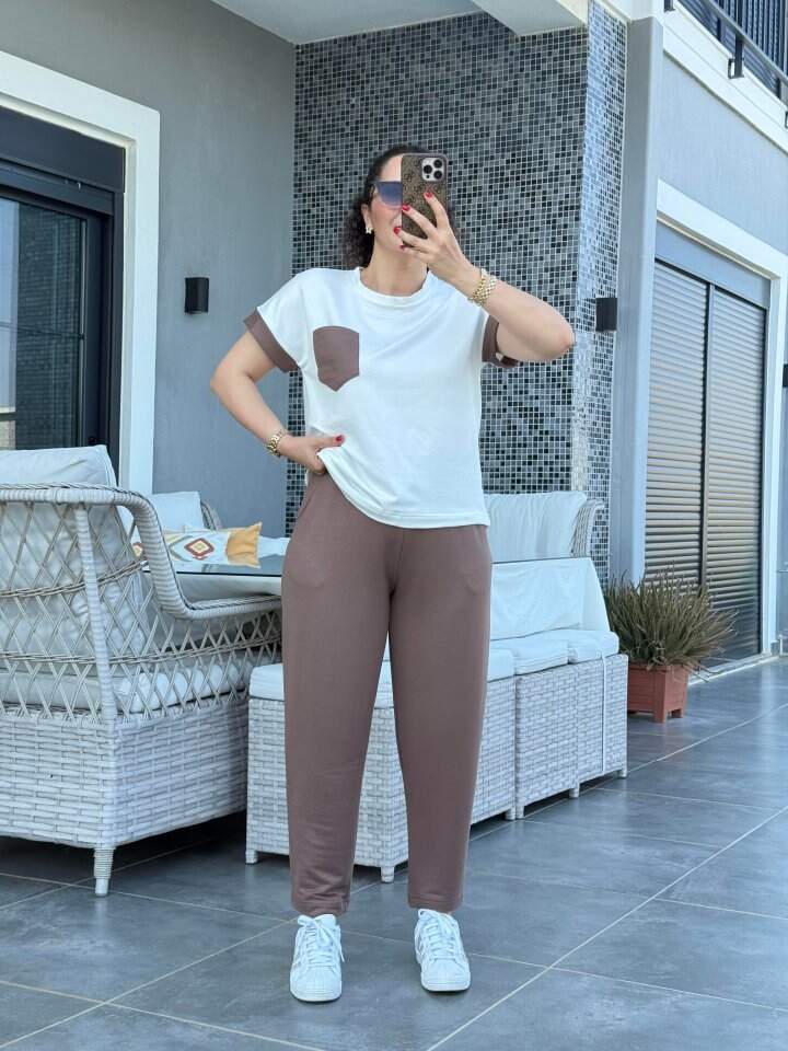 Kadın Kristal Kumaş Garnili Cep Detaylı Ikili Takım