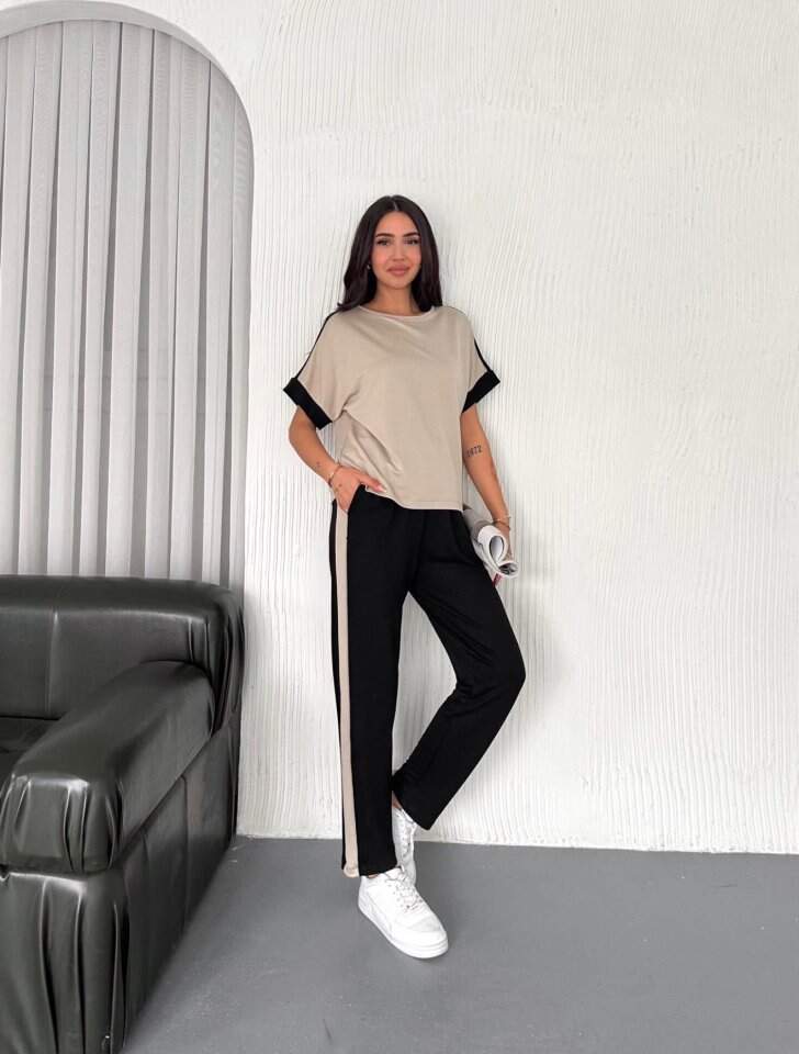 Kadın Modal Dokulu Kumaş Yanı şeritli Takım