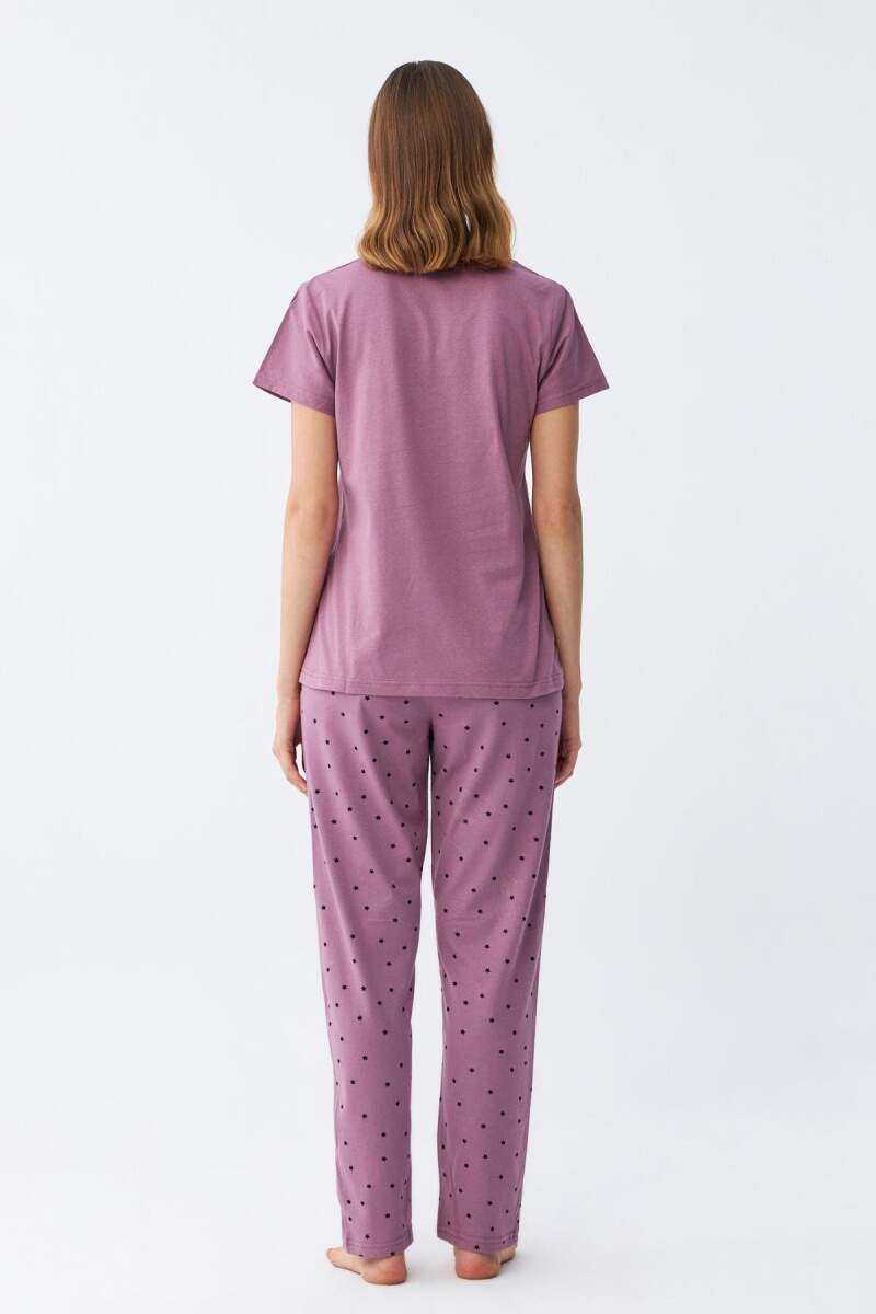 Angelino Kadın Mor Yıldız Desenli Penye Kısa Kol Pijama Takımı