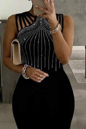 Kadın Omuz çoklu Askılı önü Taş Işlemeli Balık Kesim Janjan Krep Maxi Boy Elbise