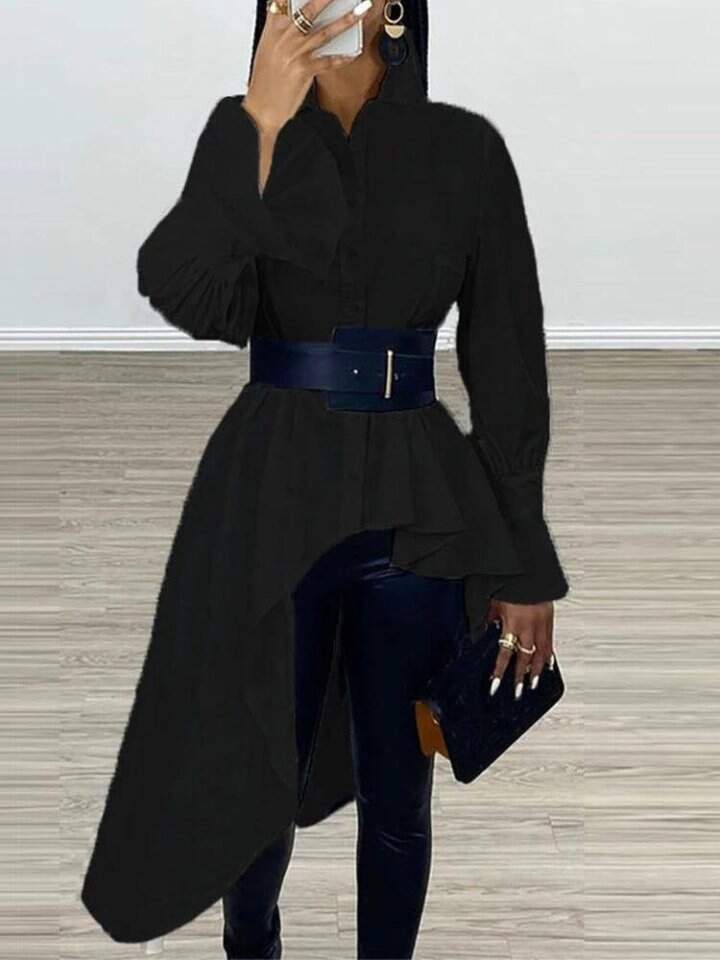 Kadın Pamuk Polyester Kumaş, Asimetrik Kesim Gömlek (Kemer Dahil)