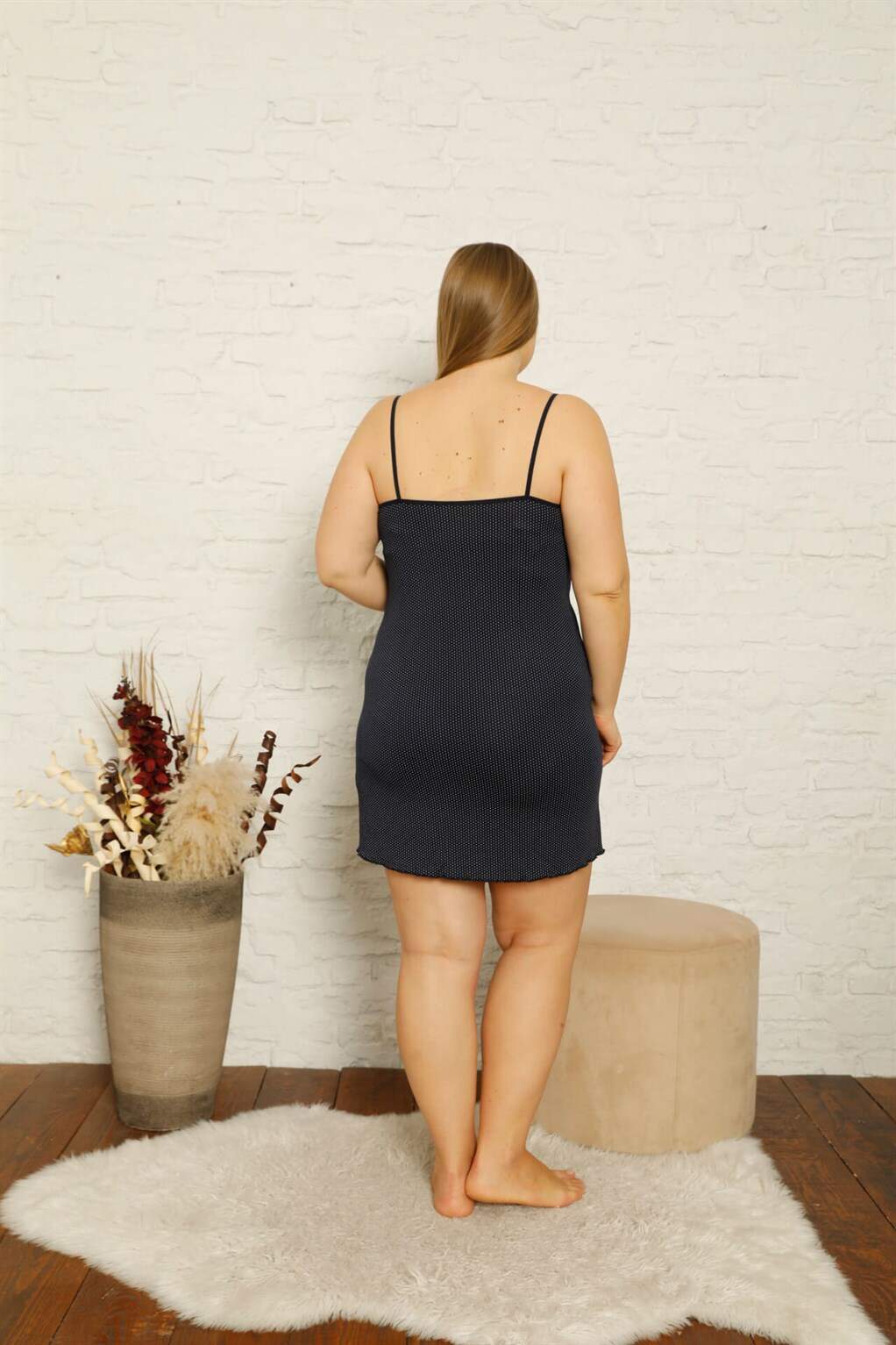 Angelino Kadın Pamuklu İp Askılı Büyük Beden Gecelik