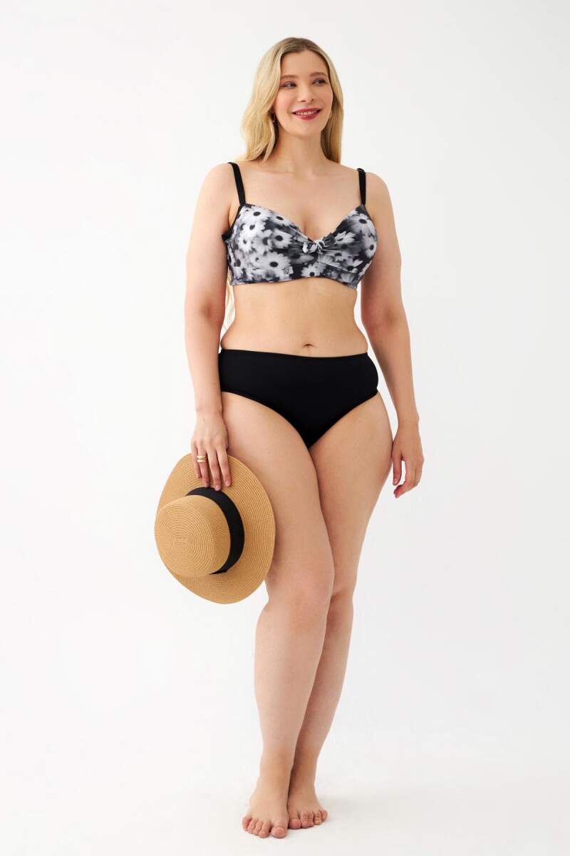 Kadın Papatya Desenli Gri Büyük Beden Bikini Takımı