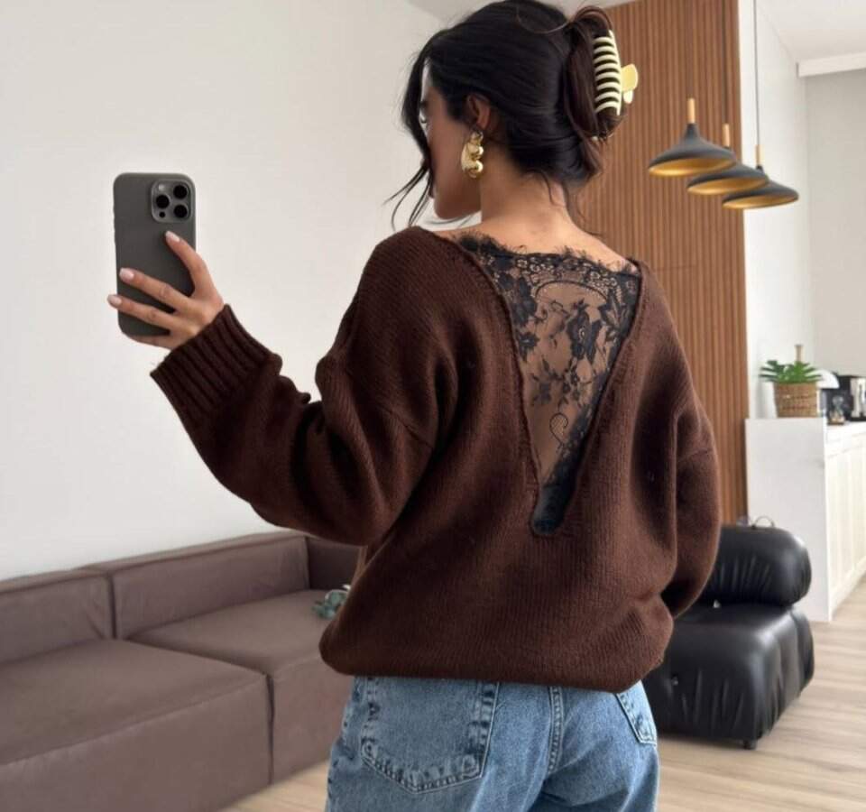 Kadın Sırtı Dantel Transparan Detay Triko Kazak