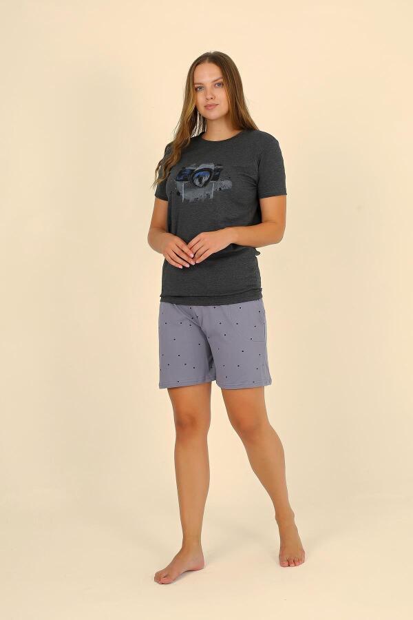 Kadın Şortlu Kısa Kol Penye Pijama Takımı Füme 3622