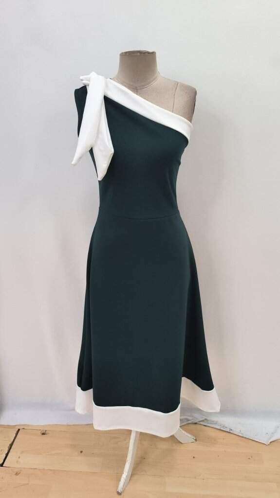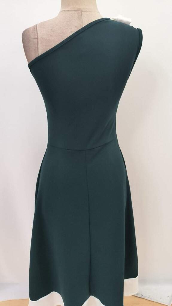 Kadın Tek Omuzu Açık Omuzlardan Kurdela Detaylı çift Renkli Ithal Krep Elbise