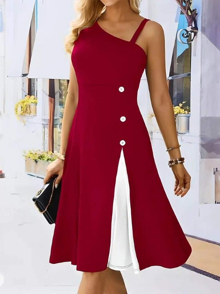 Kadın Tek Omuzu şerit Detaylı Kolsuz Yandan Düğme Detaylı Janjan Krep Elbise