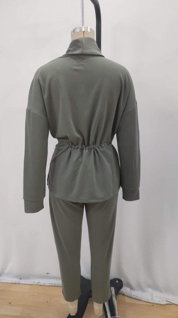 Kadın Uzun Kollu Balıkçı Yaka Belden Lastikli Modal Bluz Ve Pantolon Ikili Takım