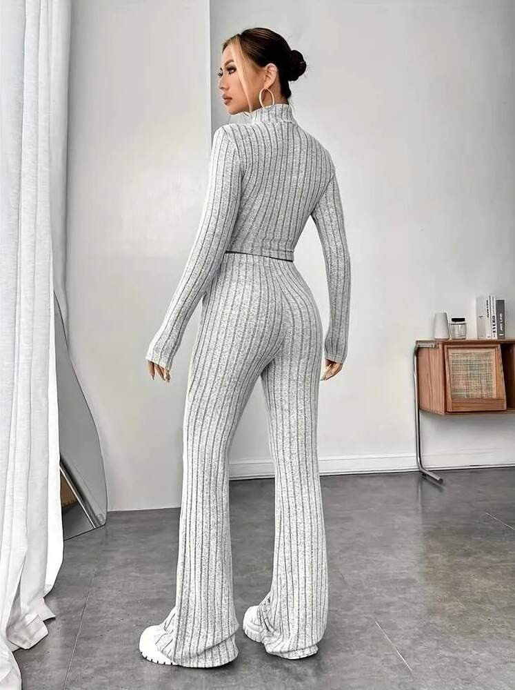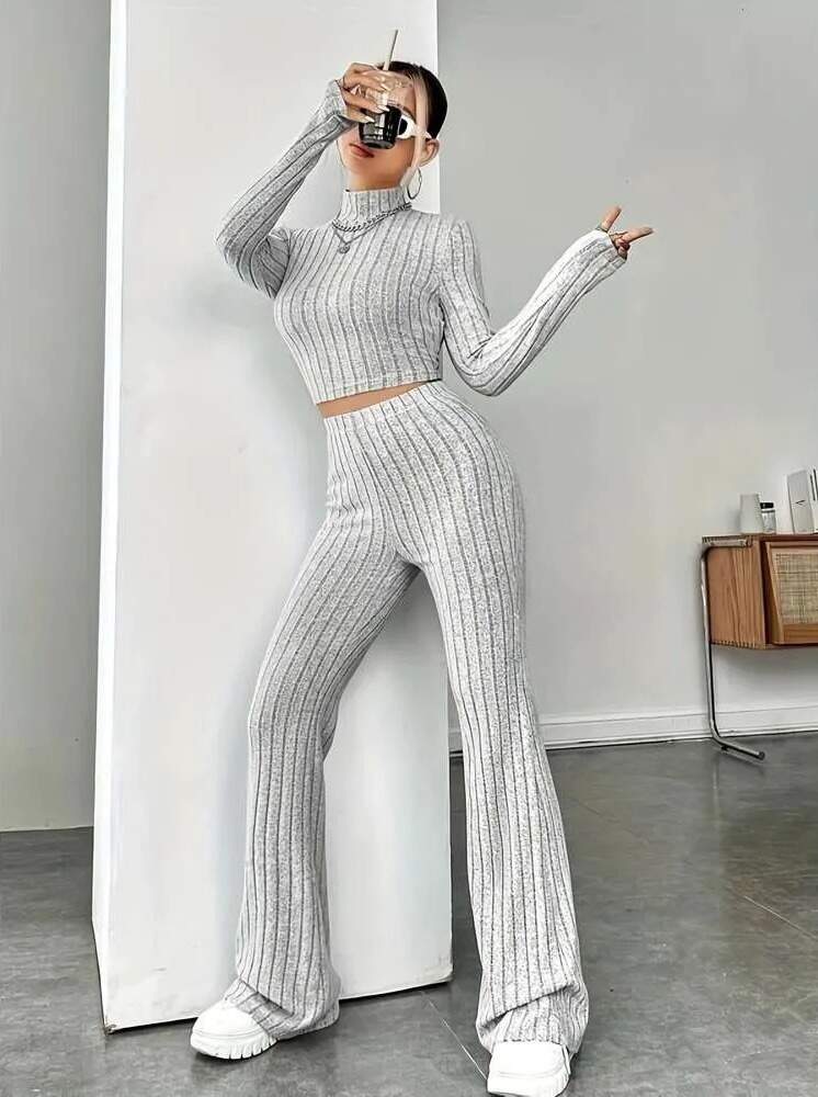 Kadın Uzun Kollu Balıkçı Yaka Krop Ve Pantolon şardonlu Kaşkorse Ikili Takım