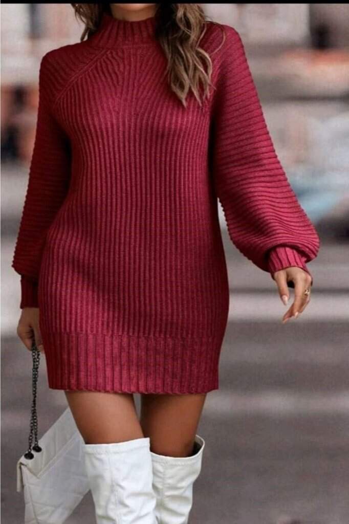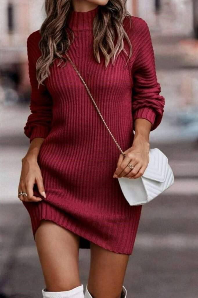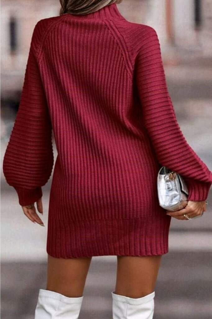 Kadın Uzun Kollu Balıkçı Yaka Mini Triko Elbise