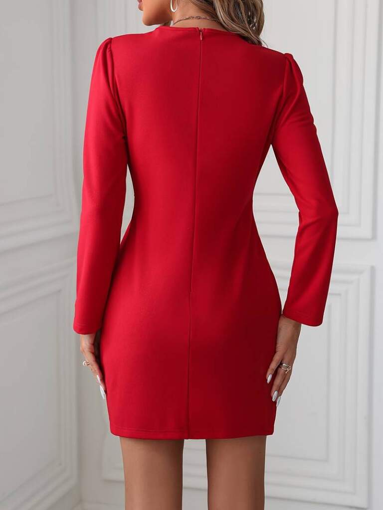 Kadın Uzun Kollu Bisiklet Yaka Bel Kemer Detay Ithal Krep Elbise