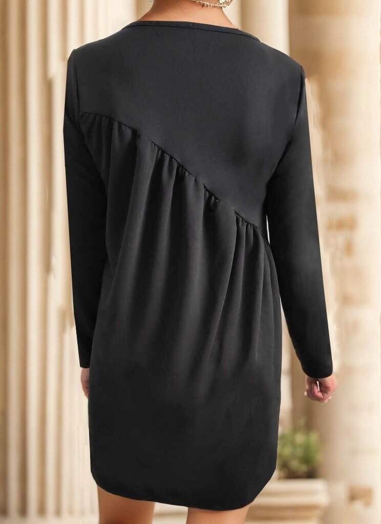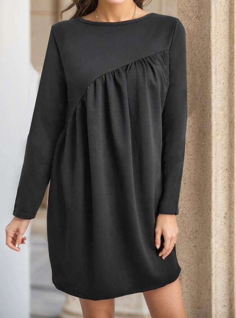 Kadın Uzun Kollu Bisiklet Yaka çapraz Büzgü Detay Iki Iplik Mini Boy Elbise