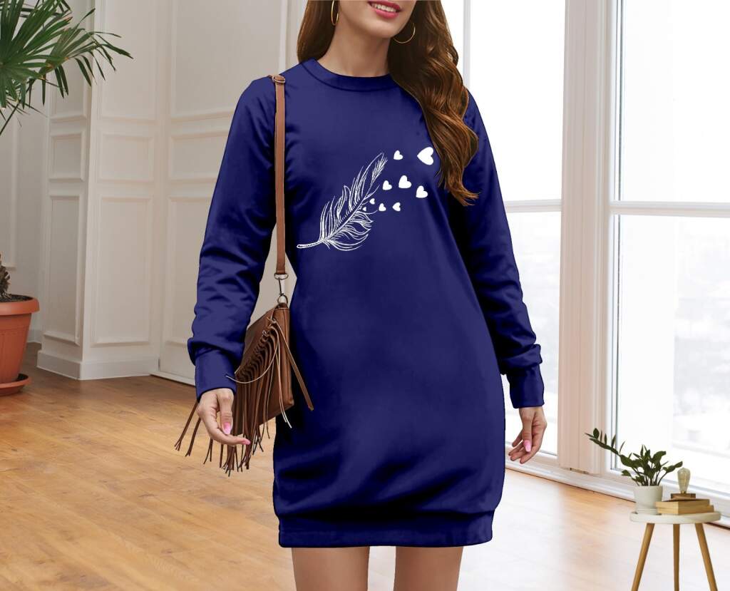 Kadın Uzun Kollu Bisiklet Yaka Desenli Viskon Iki Iplik Elbise