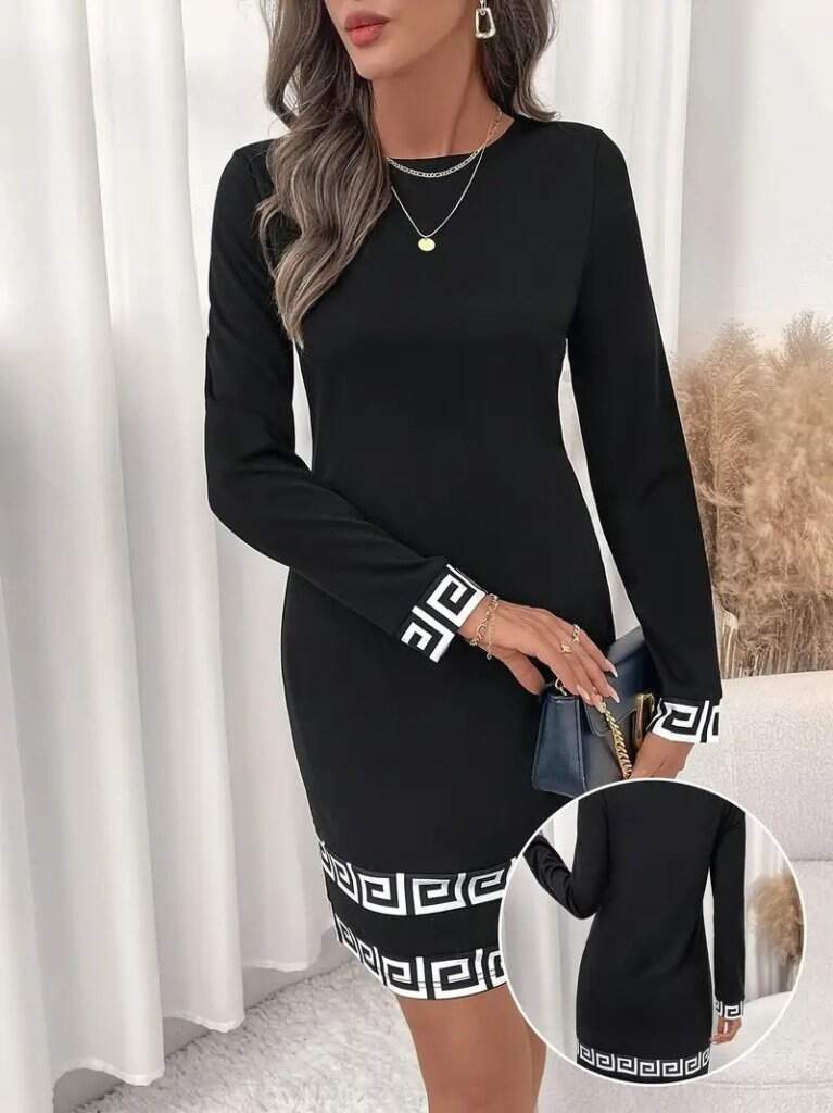Kadın Uzun Kollu Bisiklet Yaka Mini Ithal Krep Elbise