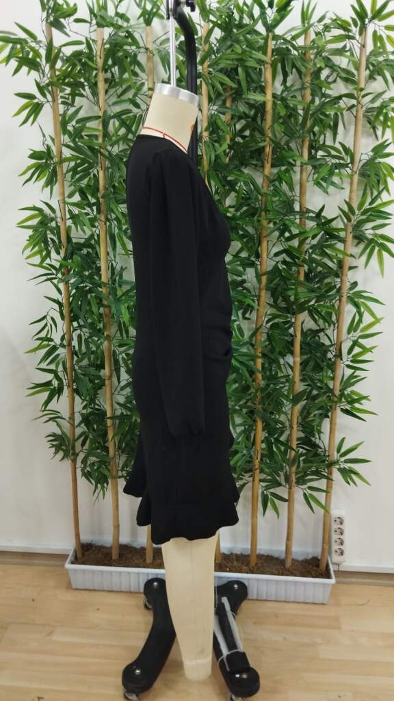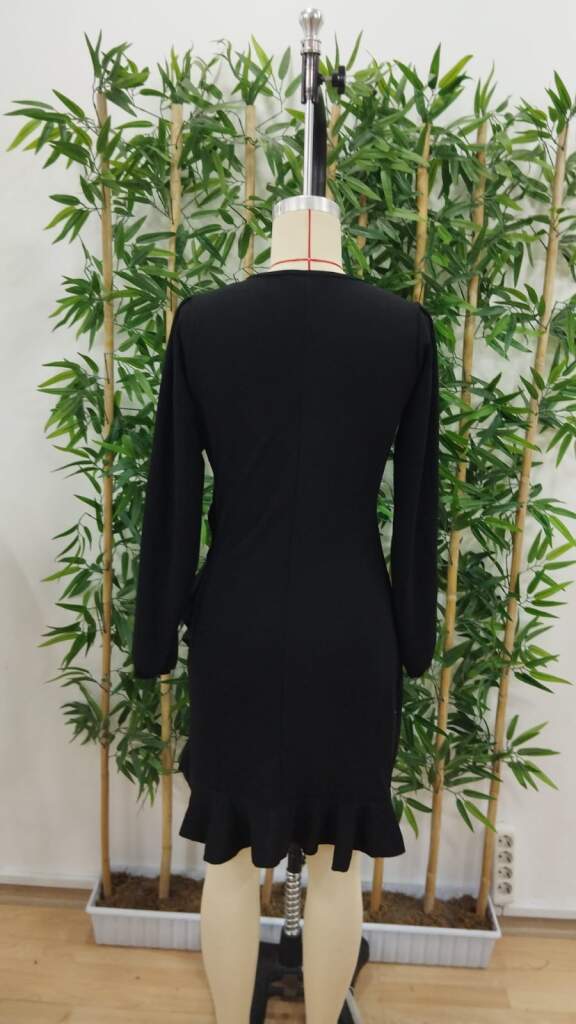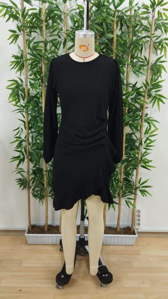 Kadın Uzun Kollu Bisiklet Yaka önden Volanlı Ithal Krep Elbise