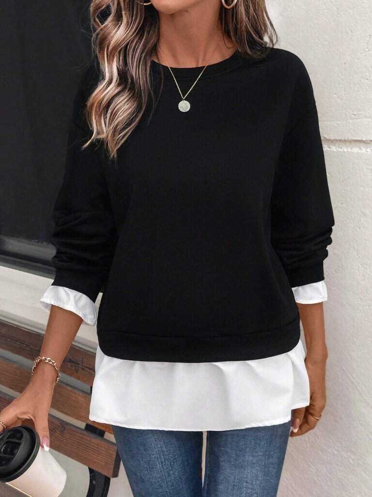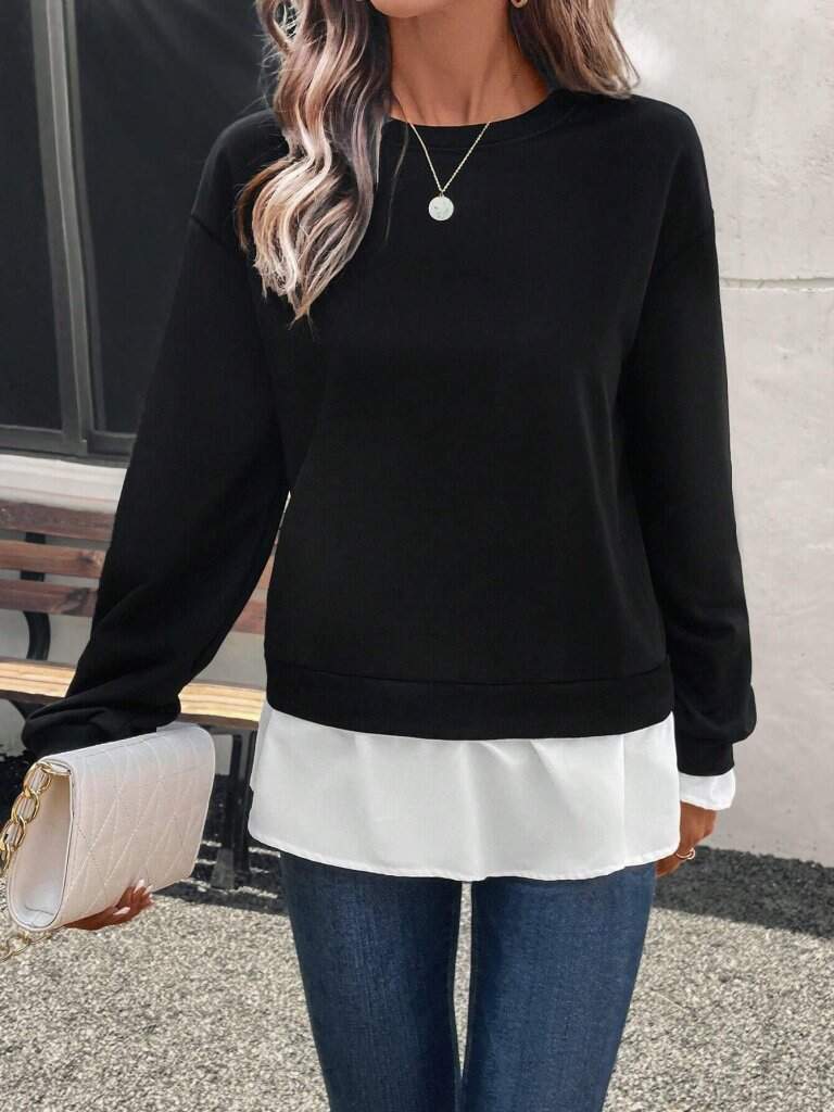 Kadın Uzun Kollu Bisiklet Yaka Viskon Iki Iplik Ve Etek Ucu Trikoton Bluz
