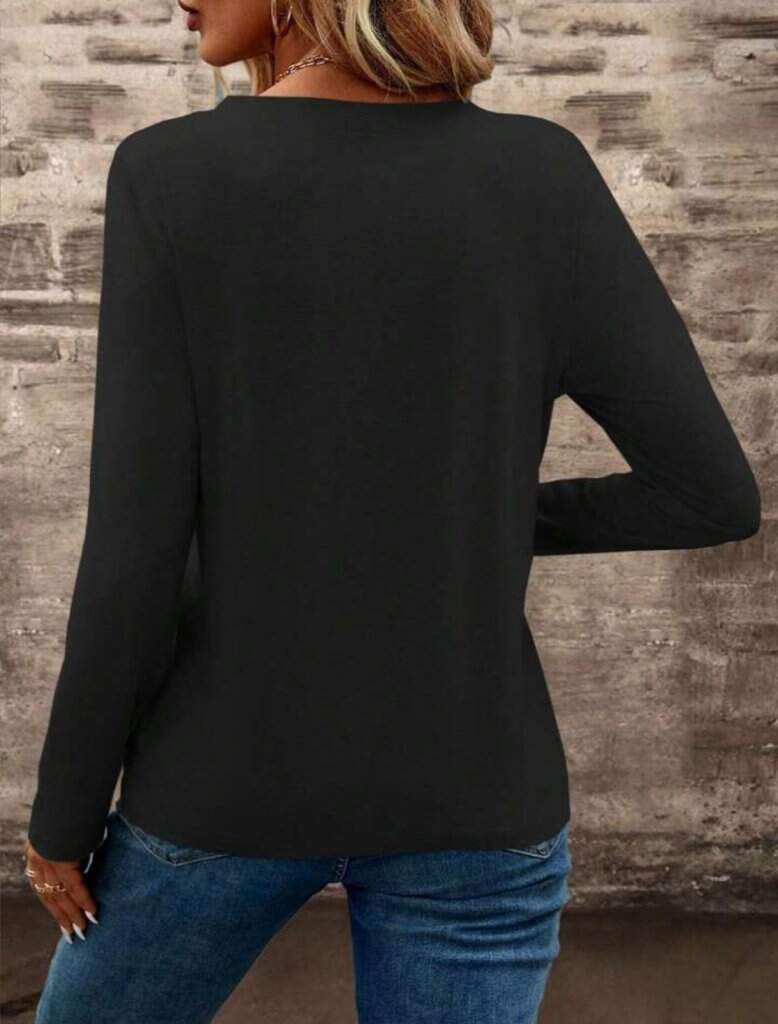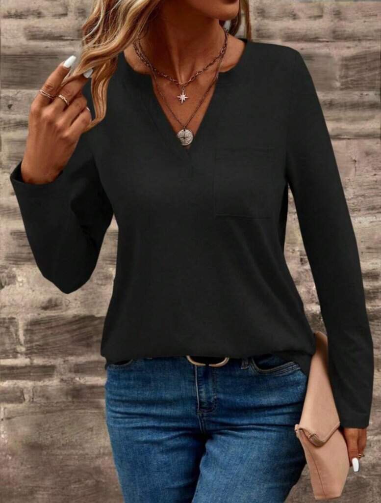 Kadın Uzun Kollu Cepli V Yakalı Viskon Iki Iplik Bluz