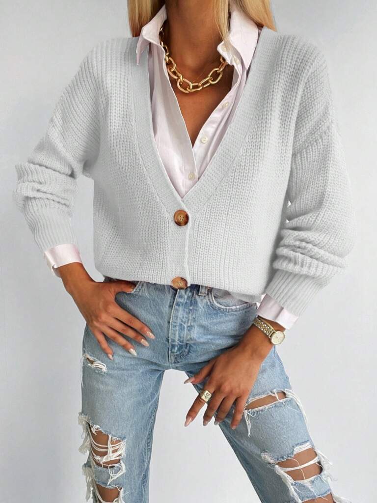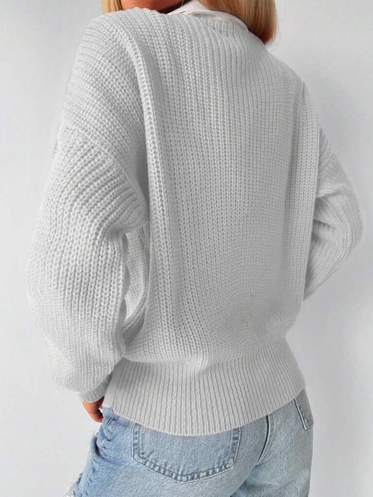 Kadın Uzun Kollu Düğme Detay Triko Bluz