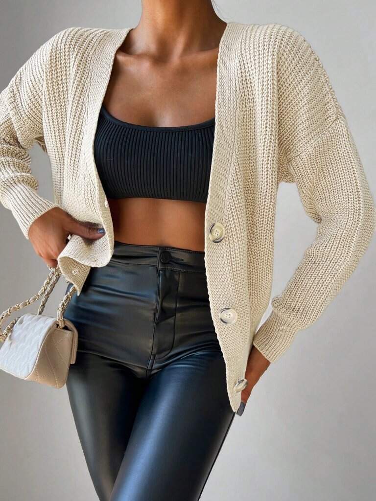 Kadın Uzun Kollu Düğme Detay Triko Bluz