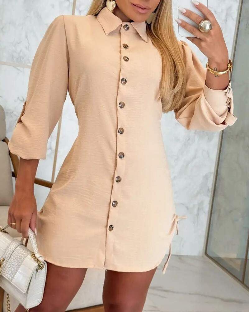 Kadın Uzun Kollu Gömlek Yaka önden Düğmeli Yanlardan Büzgülü Kısa Aerobin Elbise